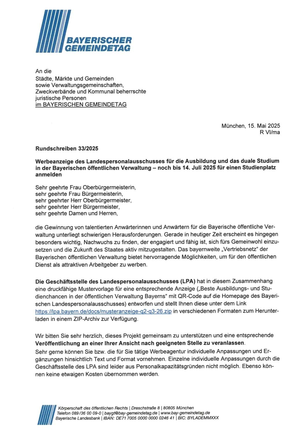 Meldung vom 16.05.2025 Anzeige für die Ausbildung und das duale Studium in der Bayerischen öffentlichen Verwaltung - noch bis 14. Juli 2025 für einen Studienplatz anmelden