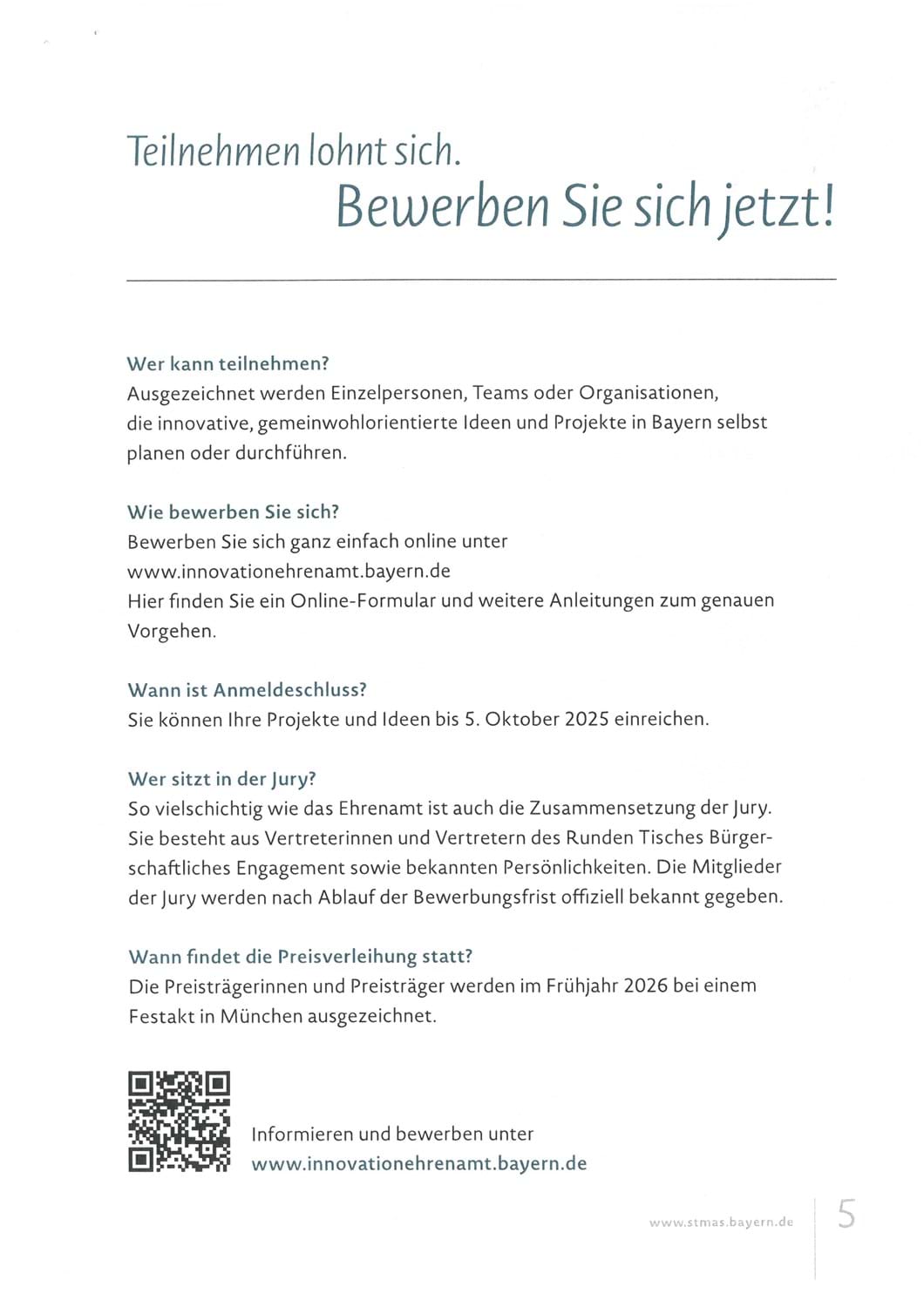 Meldung vom 07.08.2025 Bayerischer Innovationspreis Ehrenamt 2026