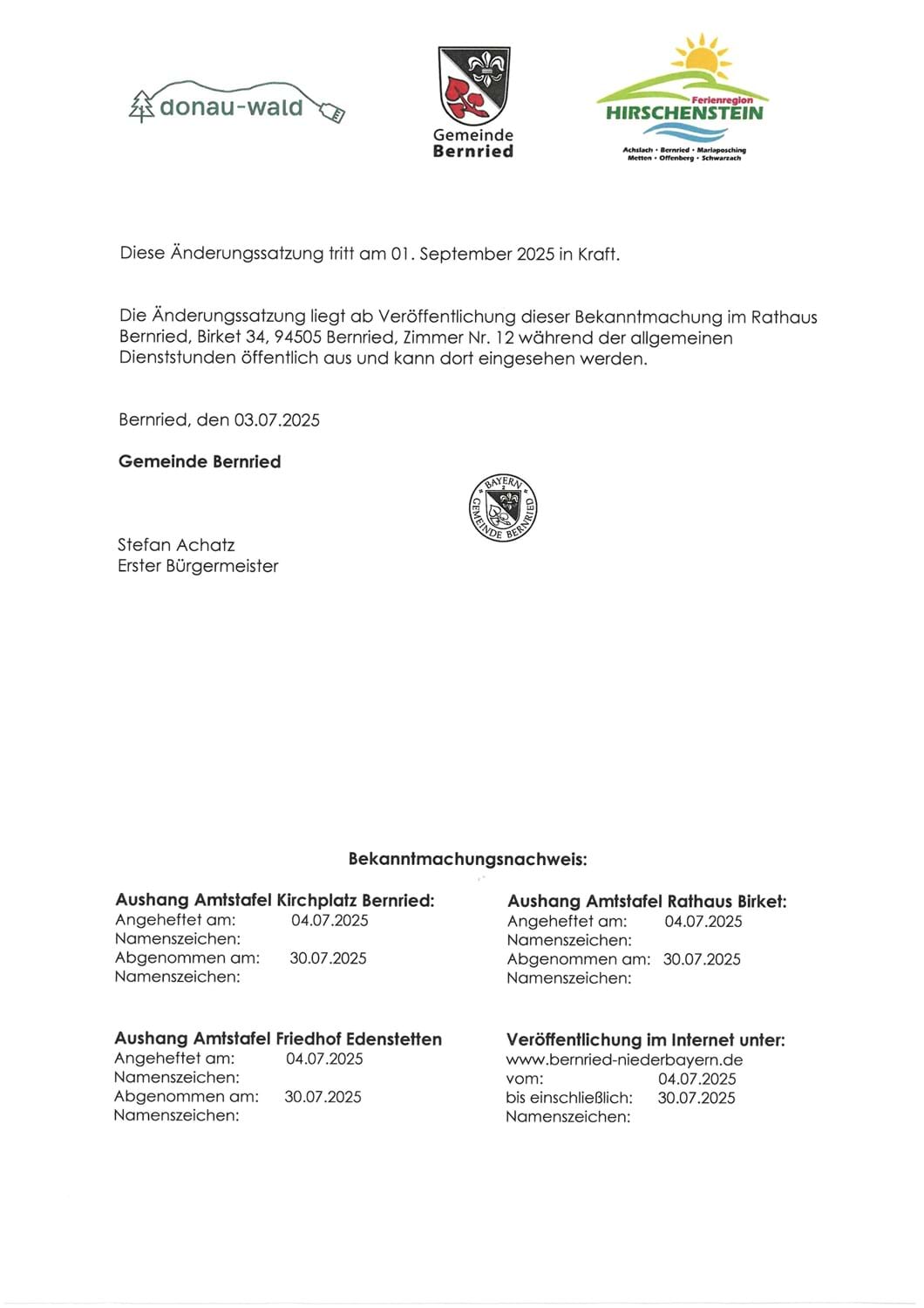 Kategorien: Bekanntmachungen, News