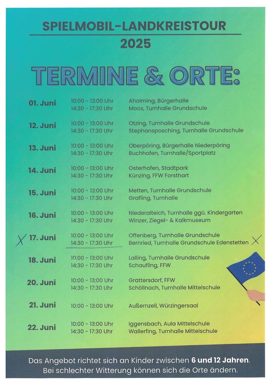 Meldung vom 04.06.2025 In den Pfingstferien: Spielmobil Landkreistour 2025 - Reise durch Europa auch in Edenstetten am 17. Juni 2025