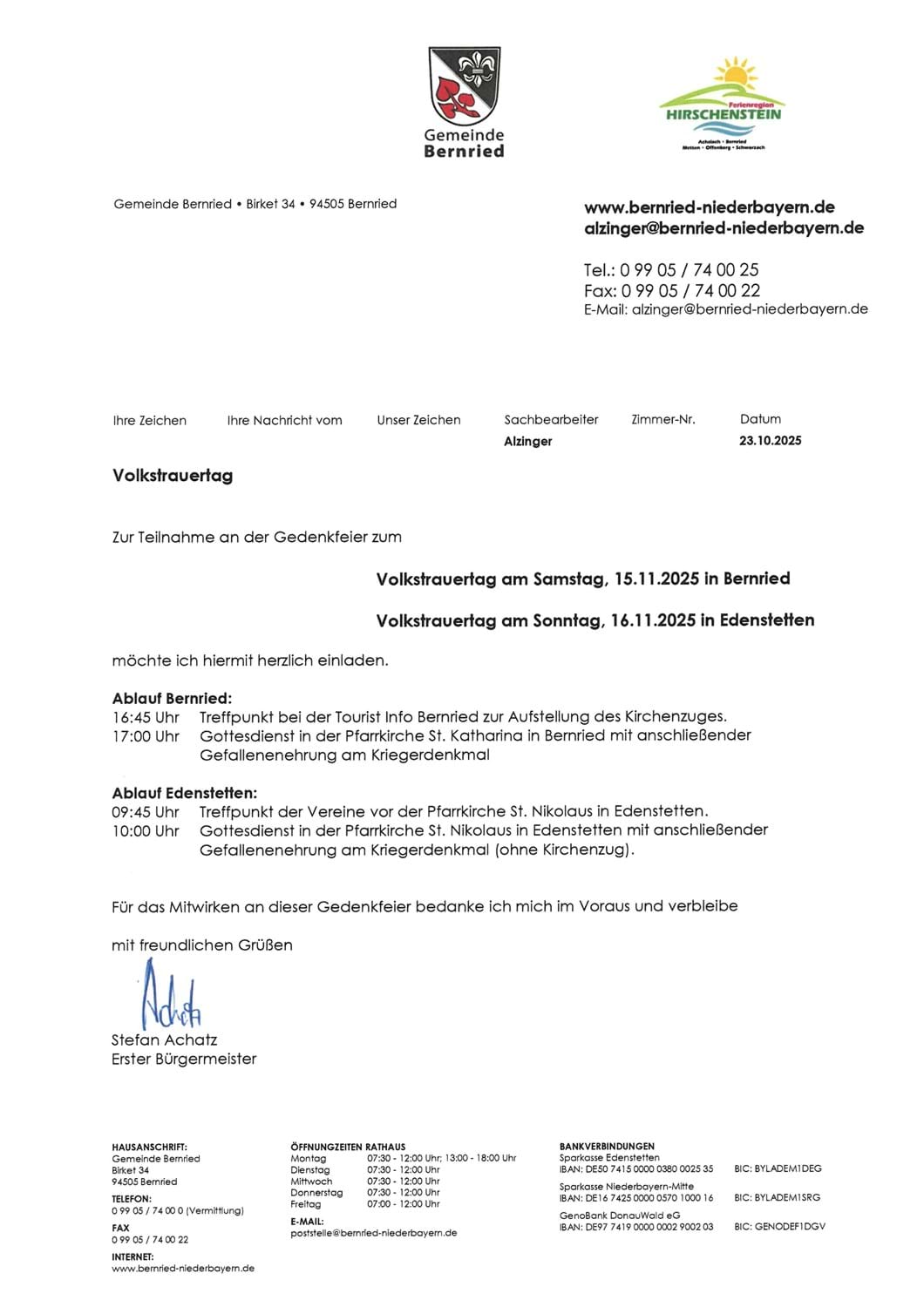 Meldung vom 23.10.2025 Volkstrauertag 2025