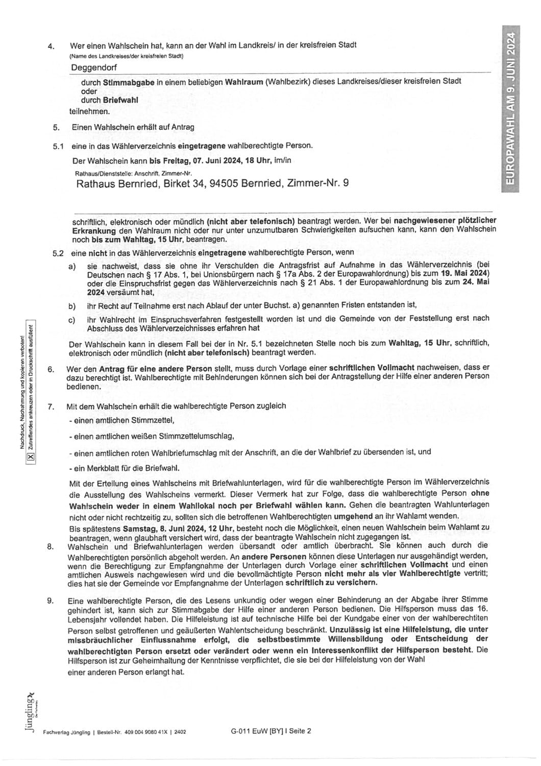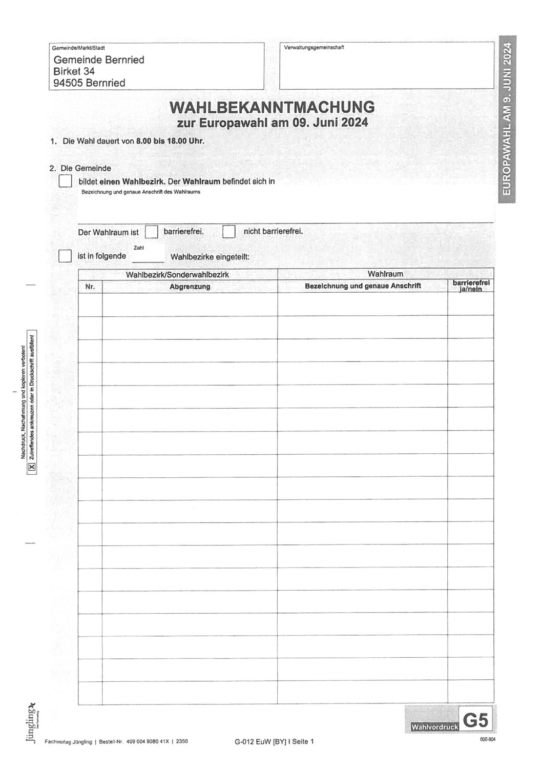 Europawahl 2024 - Durchführung der repräsentativen Wahlstatistik