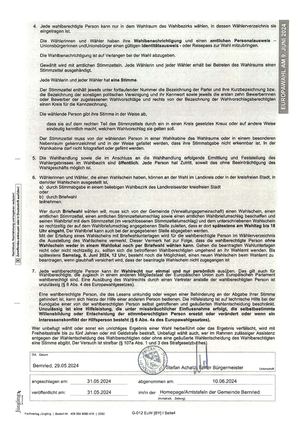 Die repräsentative Wahlstatistik ist eine Stichprobenerhebung. Dieses Mal, bei der Europawahl 2024 ist hierfür auch die Gemeinde mit einem zufällig ausgewählten Briefwahlbezirk - 0001 Egg dabei und nimmt somit an dieser repräsentativen Wahlstatistik teil. Das heißt, in unserem Fall, sind alle Eggerer, die Briefwahl beantragen, dabei. Zur Gewinnung der Daten werden die Wählerverzeichnisse und die abgegebenen amtlichen Stimmzettel ausgewertet. Für weitere Informationen lesen Sie bitte nachfolgende Seiten.