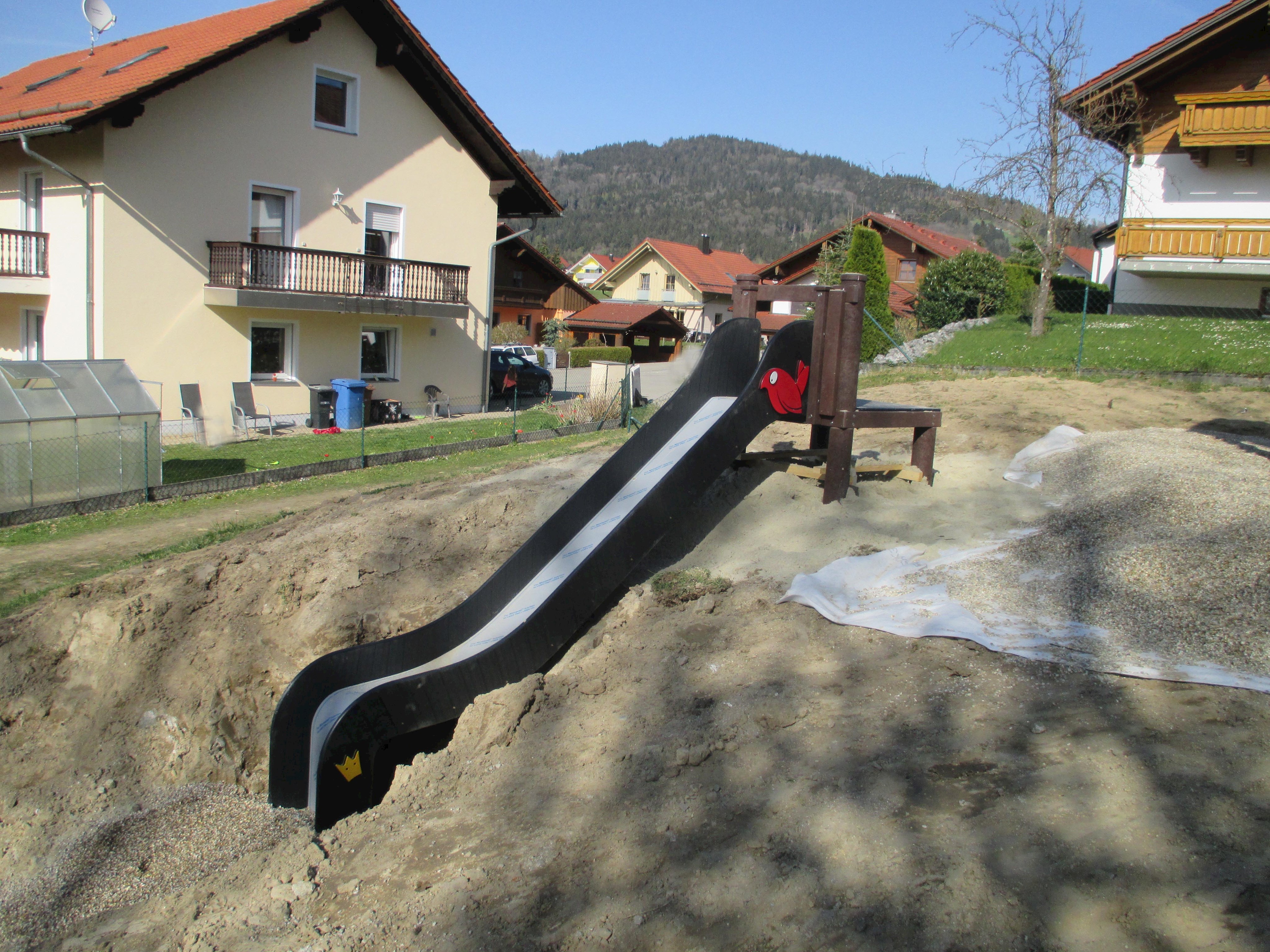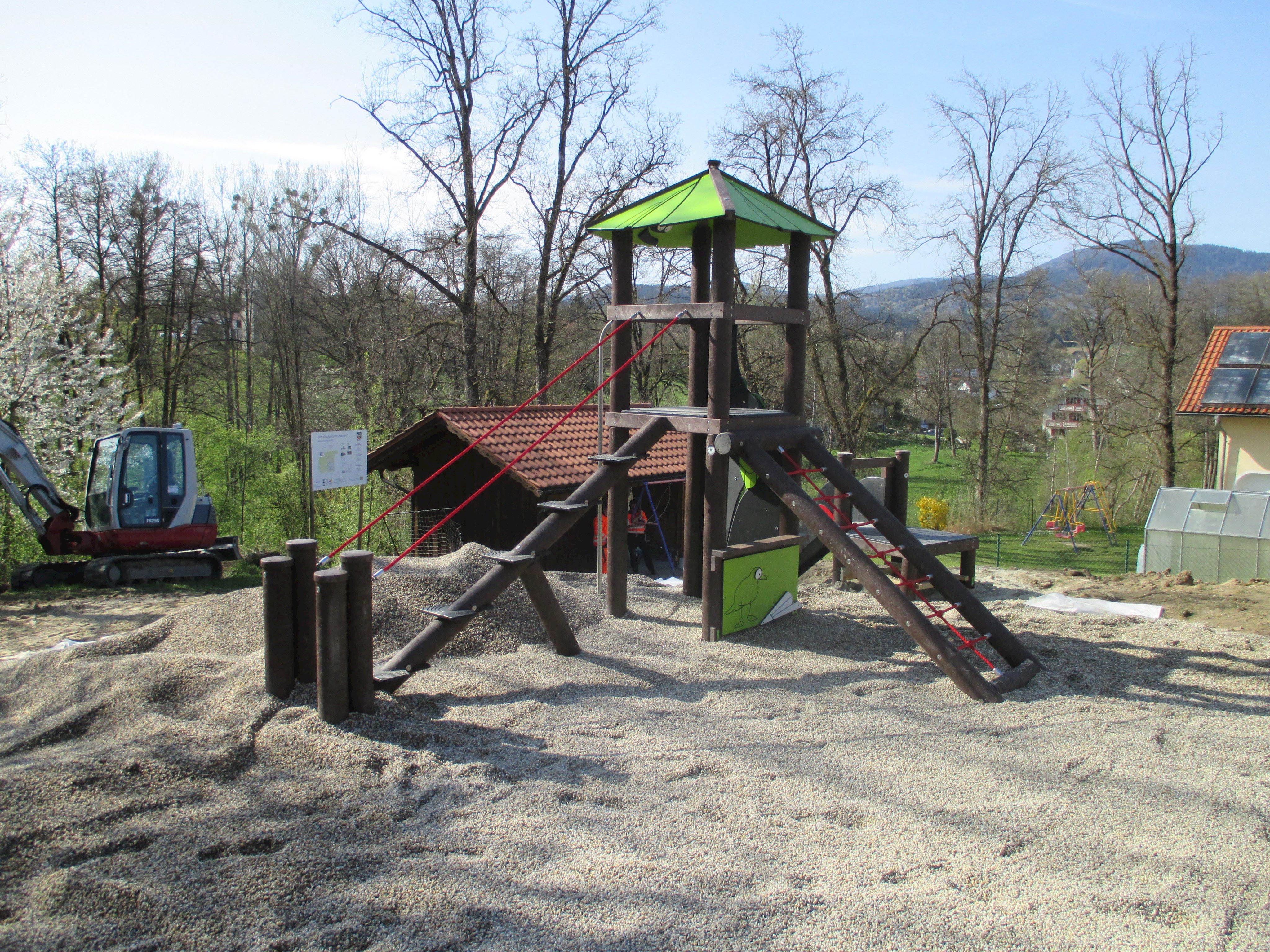 Nach Einreichung des Förderantrages und Genehmigung der Regierung von Niederbayern ist der Spielplatz fast fertig.