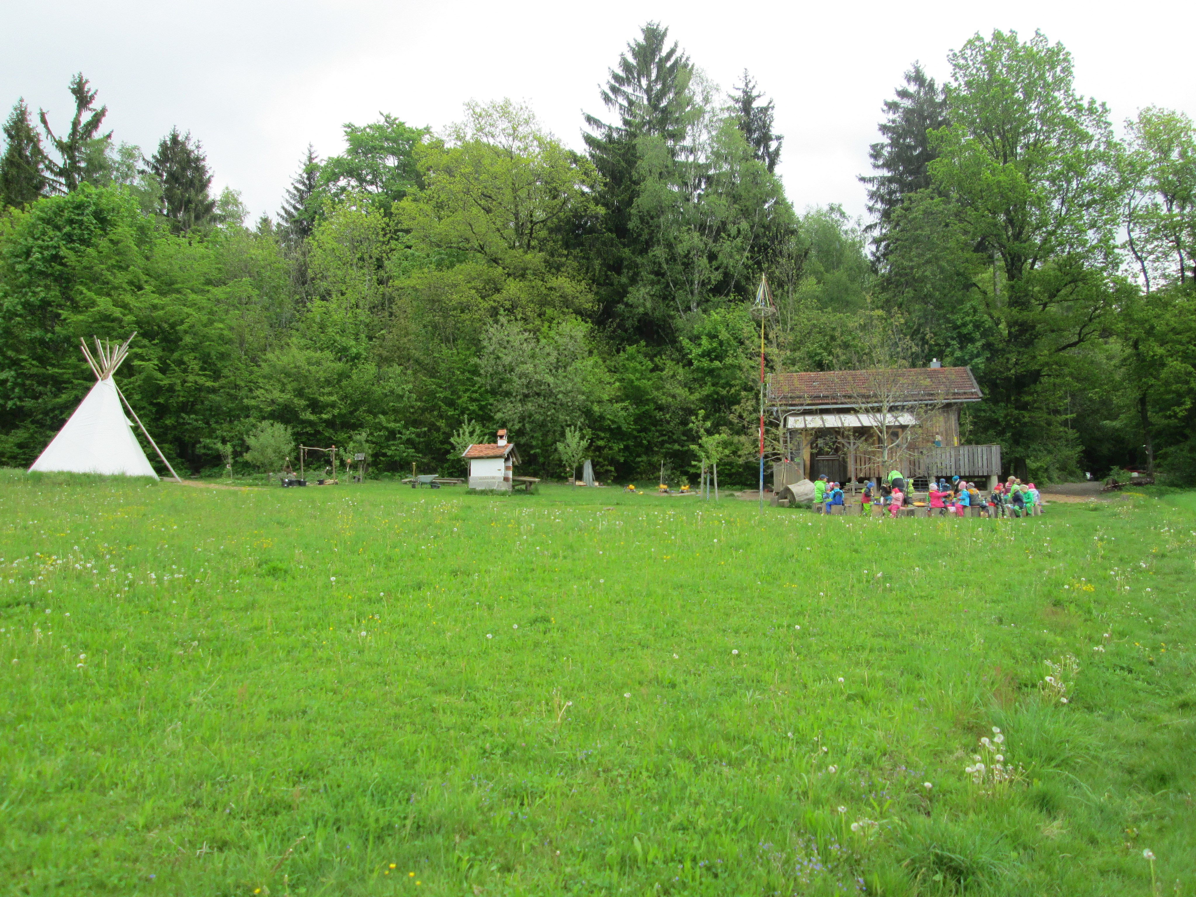 Eine Gruppe von 25 bis 30 Kindern zwischen 3 und 7 Jahren verbringen den Vormittag mit 4 pädagogischen Fachkräften im Wald.